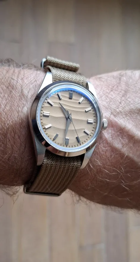Dial Options: White, Blue, or Brown with a 3D desert-pattern texture